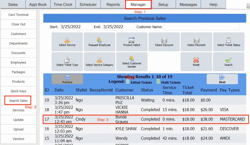 Incase if there was an error with a ticket where the stylist name is incorrect please follow the steps below to change to the correct name. This should be only performed by a manger. If there is no manager please contact DL or owner.
